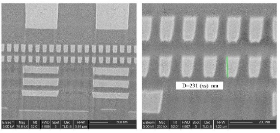 Figure 11. Dummy filling flow been processed on a 65nm multi project wafer. Electrical measurements have been performed and physical measurement of metal thickness have been made with a SEM (Scanning Electron Microscope). Correlation between the various results have allowed to establish a prediction function. This prediction function can be applied on any area of a real chip to drive a metal filling engine which is already available. To validate the full methodology, the different steps (insertion of process monitoring modules, electrical measures, physical measures) have been performed manually but the procedure can easily be automatized to fulfill production requirements. The monitoring structures generator will be refined to automatically take into account process design rules as well as MPW floor plan. The prediction function established with a restricted number of cases may be enhanced at each new shuttle and thanks to a fully automatic test protocol. This project has been sponsored by European program Catrene[1]. It has been developed in collaboration between Xyalis and STmicroelectronics.