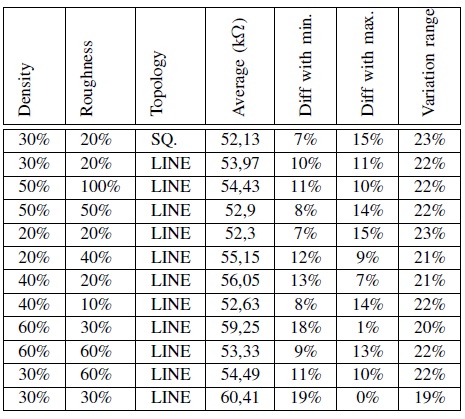 The methodology consists in measuring the impact of the 3 design parameters on the CMP process and thus on the metal thickness variation. We will correlate the physical thickness variation to an electrical variation easily measurable. A set of test structures should be available in order to make a statistical analysis on the various results. This means that, for each parameter, we should implement a set of different patterns with one of the parameters changing, the 2 other remaining fixed. This may create a number of different patterns, but considering that some configurations are not possible and that some combinations may be redundant we can dramatically decrease the number of test structures. The validation of the process monitoring structure is made in multiple steps: