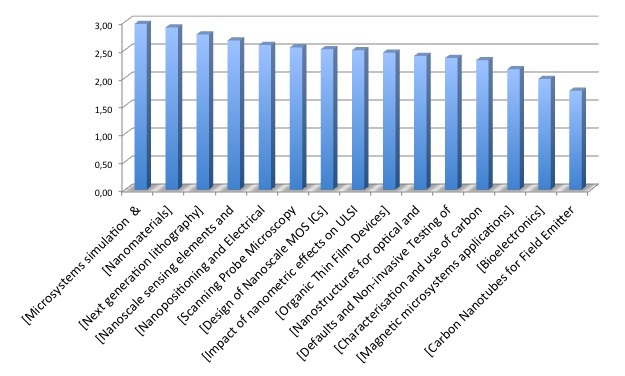 However, some discrepancies occur for some topics like advanced lithography : everybody agrees to say that it is very important but enterprises seem not to really need employees with any competency in this domain. This can be explained by the fact that this task is generally subcontracted to external suppliers. Personal interest may be a little bit far from real needs : for example bioelectronics is ranked #1 as a personal interest but there is no real need at least for a short term. A topic like design of nanoscale ICs is not considered as a top priority request but when taking into account the number of people involved in this task, it becomes one of the most important demand in terms of expected skills. It is also important to notice that the short term needs are very close from the long term ones. This may be due to a lack of visibility for the future. Micro-electronics is currently at an important turn where the continuous improvement is no more viable and where a major break through is needed…