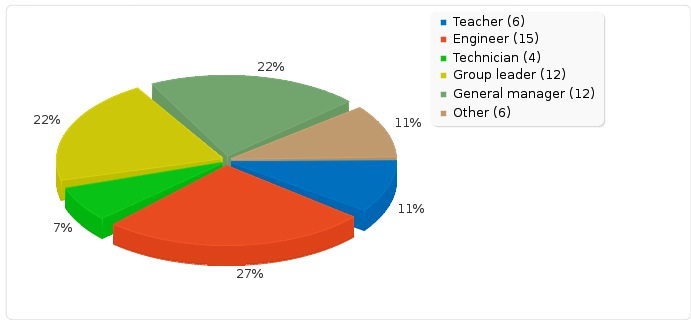 It is important to notice that about 40% of the persons who answered the survey are group leaders or general managers. Repartition of others is almost homogeneous between technicians, engineers and teachers. We can conclude that the results from this survey are very representative of the real global needs.